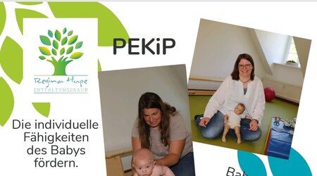PEKiP findet in einer kleinen Gruppe mit bis zu acht Müttern oder Vätern und ihren Kindern statt.